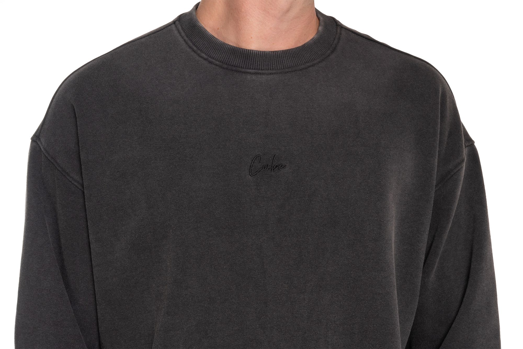 1 CUBE Organic Sweater SCRIPT GTY FIT washed black