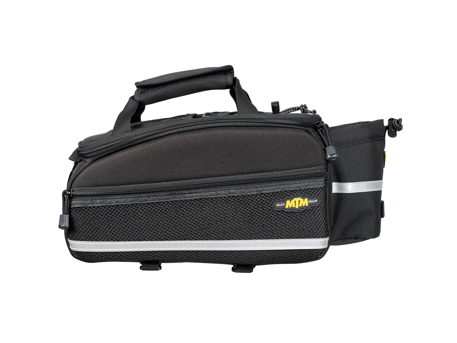 Besonders handliche Gepäckträgertasche. Der einzigartige Konstruktionsprozess kombiniert vorgeformte Paneele und flexibles Gewebe für Steifigkeit und Wetterbeständigkeit. Ein unterteilbares Hauptfach, zwei seitliche Mesh-Taschen mit Reißverschlüssen und die integrierte Flaschenhalterung sorgen für zusätzliches Fassungsvermögen. Die Tasche lässt sich wahlweise mit Klettgurten oder durch Montage einer optional im Fachhandel erhältlichen MIK®- oder KLICKfix® / Racktime® Snapit 1.0 / 2.0 / Vario-Adapterplatte auf einem Gepäckträger befestigen.